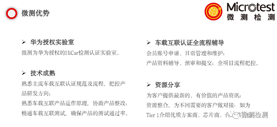 微測檢測擁有市面主流車載互聯檢測認證能力(HUAWEI HiCar、Apple CarPlay、Android Auto、Baidu Carlife),并且是華為HiCar官方授權實驗室,在車載互聯領域擁有超8年經驗,能夠為客戶提供一站式檢測認證服務!
